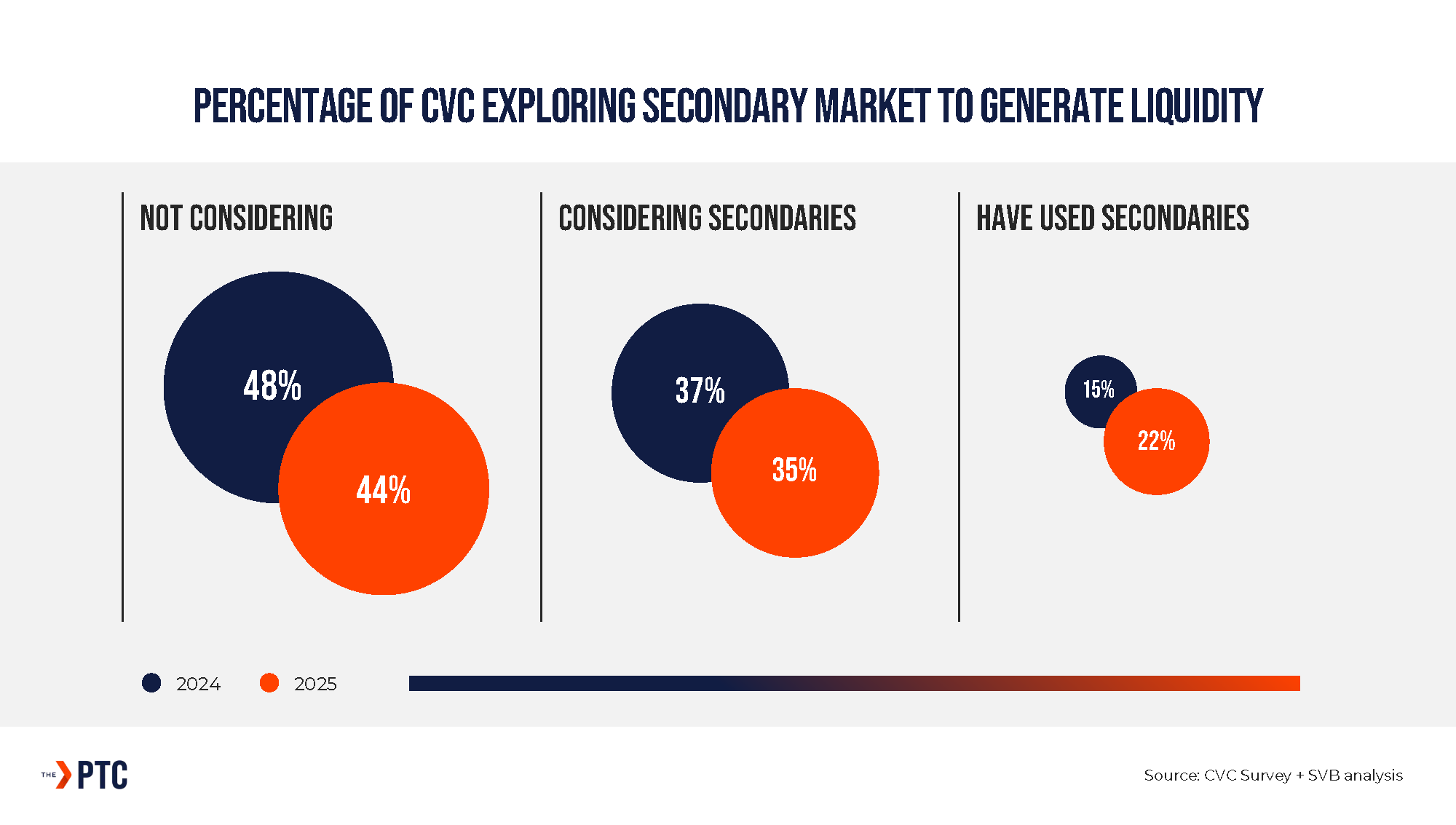 This has led to a significant increase in secondary market activity. In 2025, we saw that 22% of corporate venture capitals (CVCs) reported using the secondary market to generate liquidity. This figure represents a 7-percentage point increase from the previous year, highlighting how these investors are actively managing their portfolios in the absence of exits that would traditionally have been available.